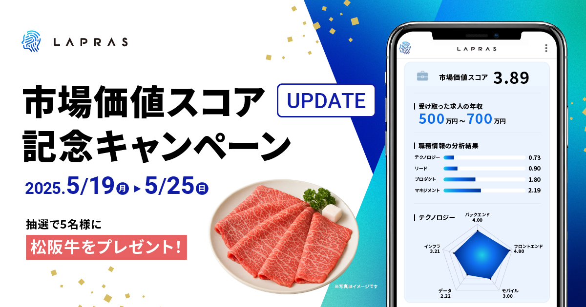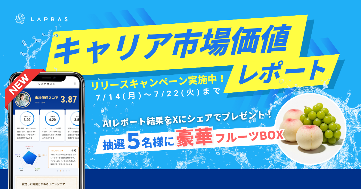 本キャンペーンは エンジニア向けポートフォリオ&転職サービスを提供する LAPRAS ユーザーを対象にしたキャンペーンになります。 キャンペーンへのご参加には LAPRAS にご登録をお願いします。 →LAPRAS の登録はこちら 本キャンペーンは終了しました 予測オファー年収を見てみる 先日新しくリリースした「予測オファー年収」機能はもうチェックされましたか?👀 この度、 【予測オファー年収 …