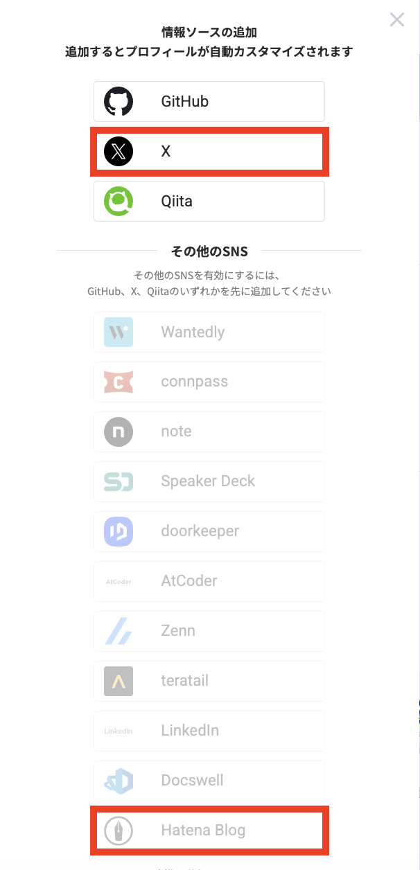 1️⃣ LAPRAS に X と はてなブログ を追加する