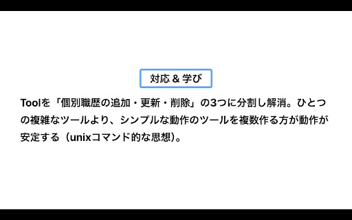 ユーザーに提供する機能としても「安全に使えるかどうか」という点は大切なポイントです。先に述べた「入力した職歴情報が消されてしまった」といった挙動が生じるようだと、ユーザーの皆さんに安心して使ってもらうのは難しいです。ユーザーが誤った操作をしてしまったり、LLMが意図しない出力をしたとしても元のデータが守られ、安全に復旧できるようにしていく必要があります。