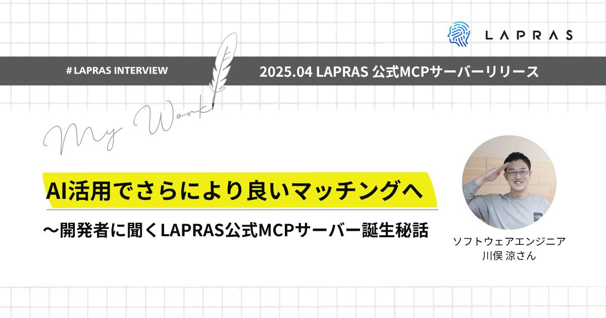 2025年4月、LAPRASでは公式MCPサーバーをリリースしました。これによってLAPRASで新たにどんなことができるようになったのか、今後LAPRASはどんな方向性を目指していくのか、MCPサーバー誕生の背景を開発者に尋ねたインタビューの内容をお届けします!
