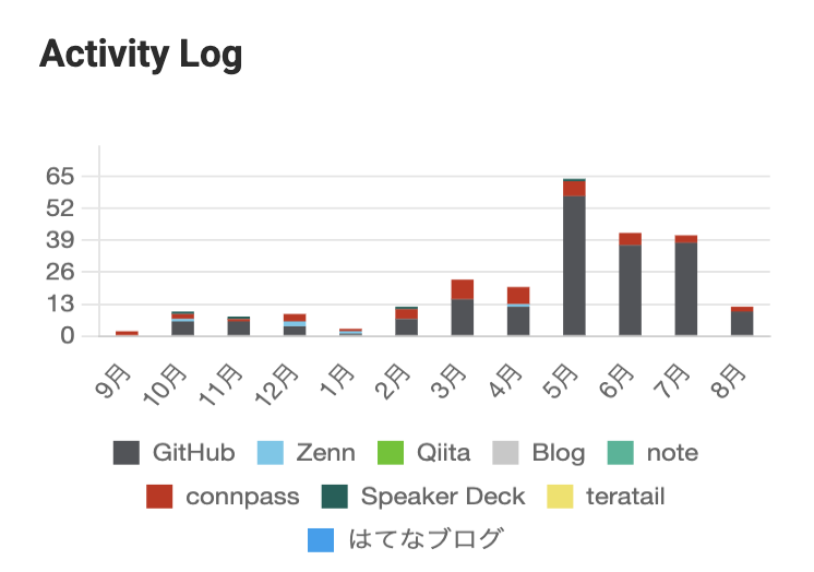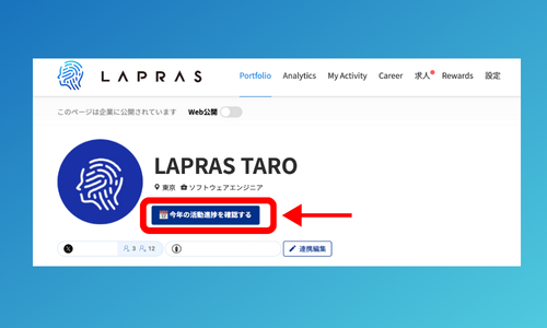 ※LAPRASにGitHubやnoteなどの各SNSを連携していただくと、今年の活動状況を可視化することができます。