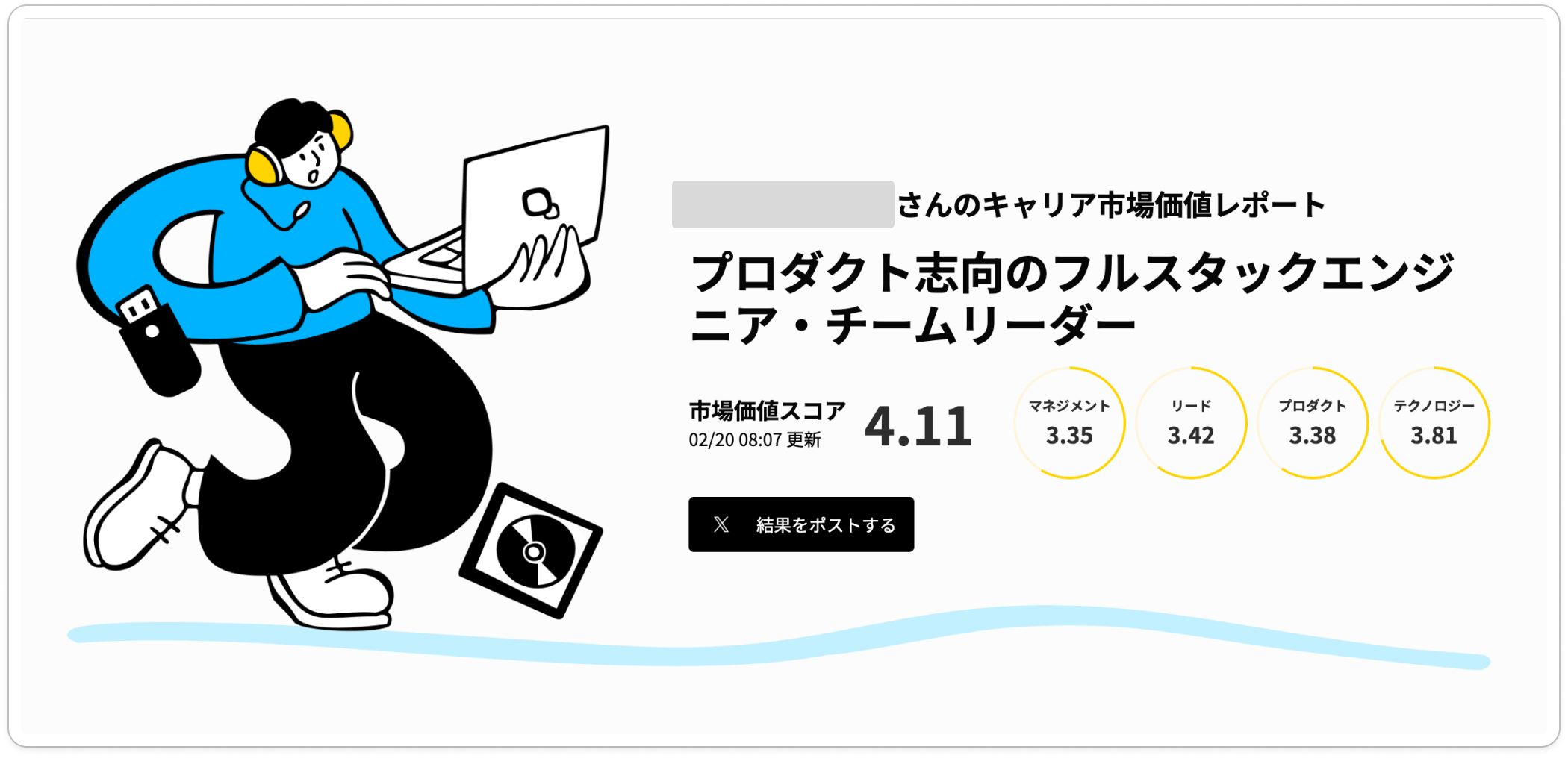 2. 「キャリア市場価値レポート」のX シェアボタンをクリック☝️