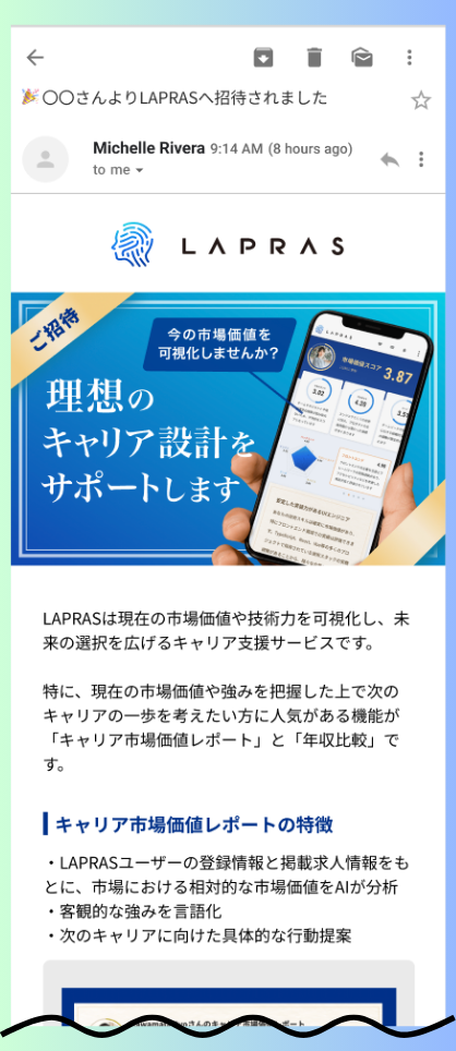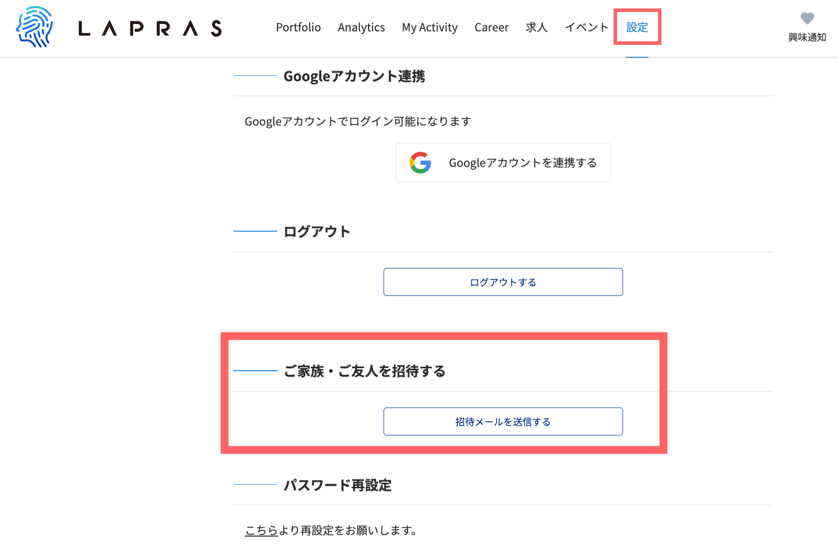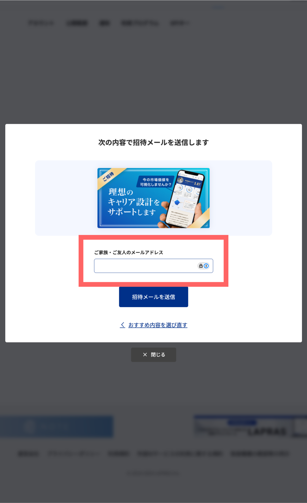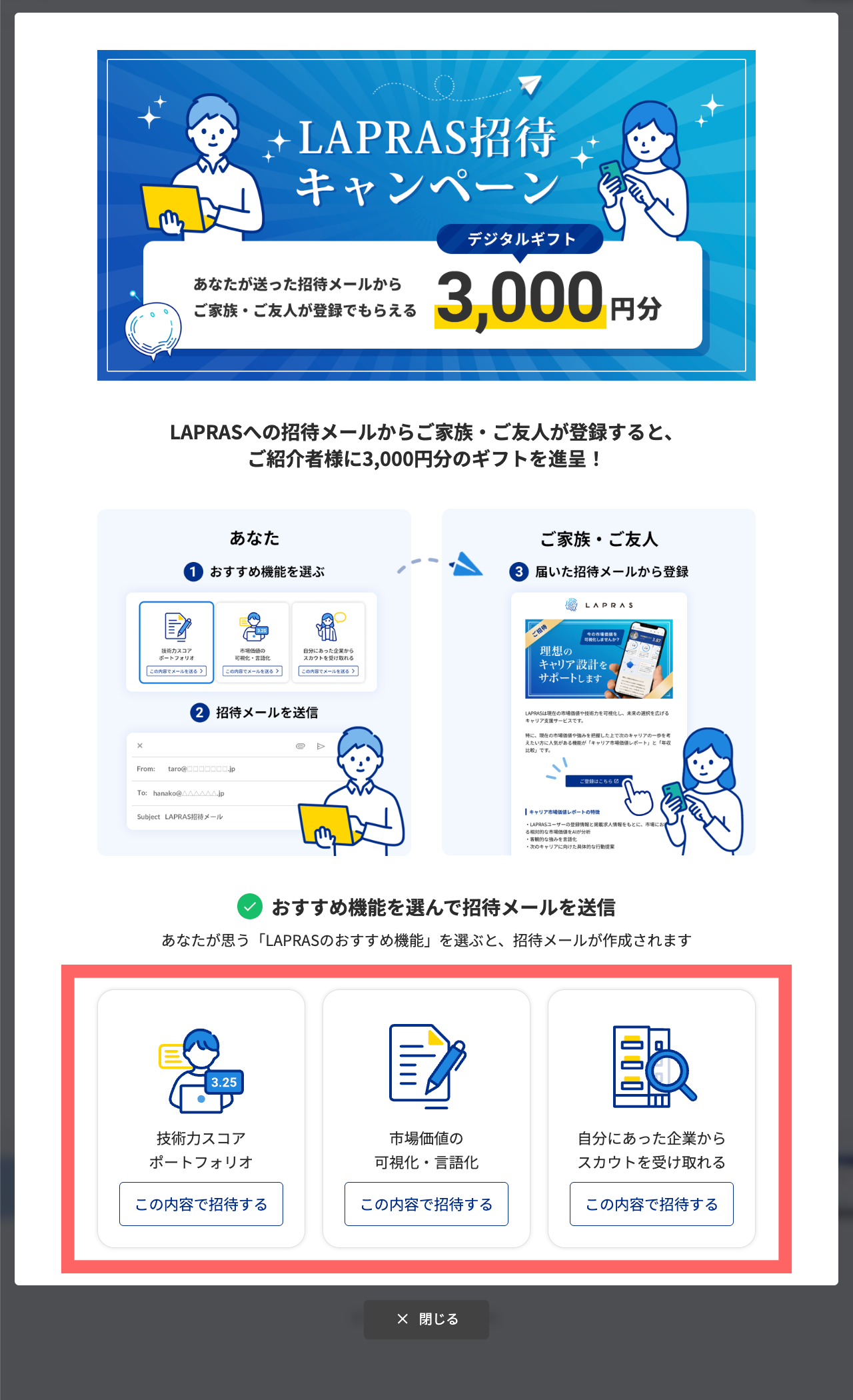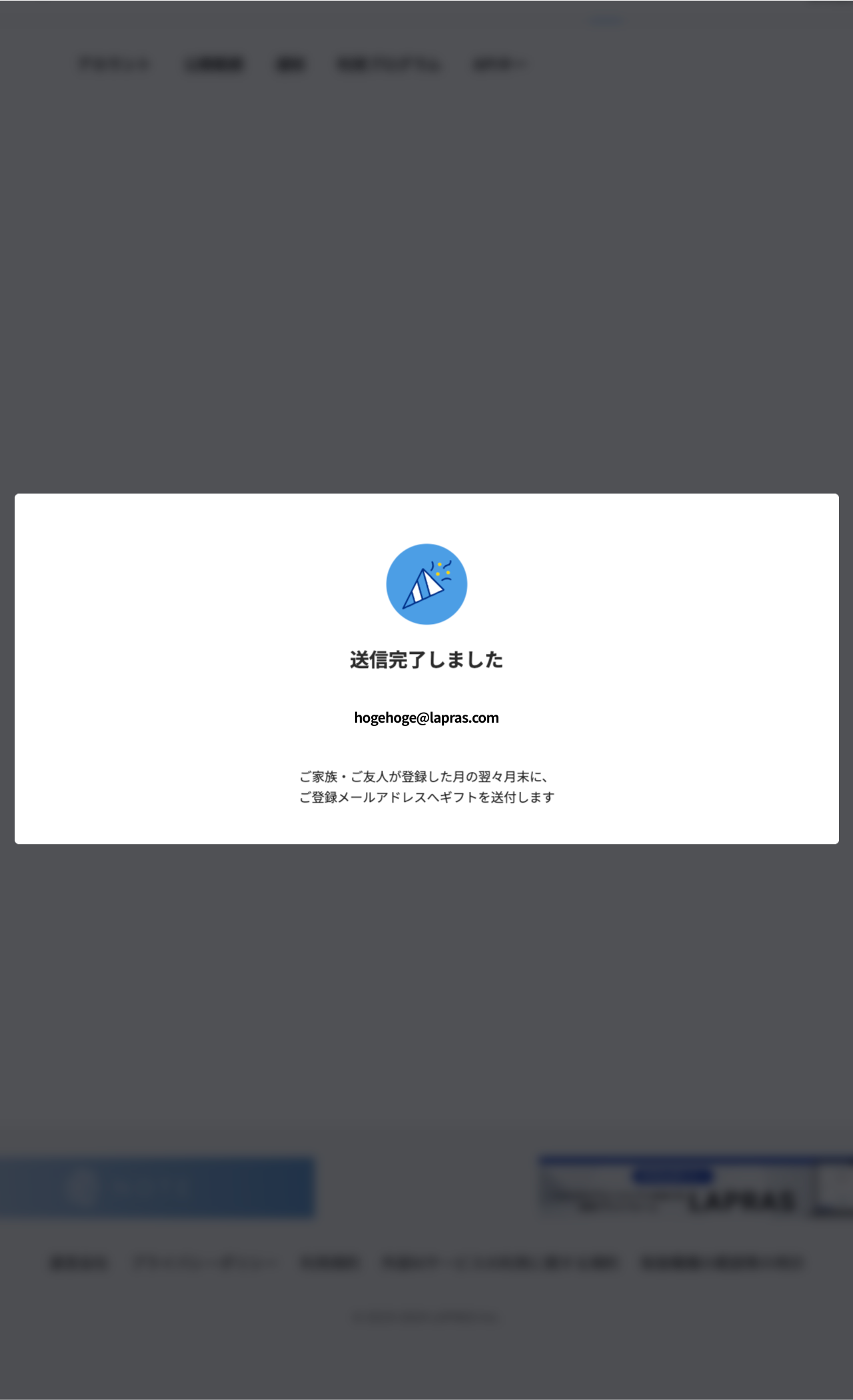※ご招待いただいたご家族・ご友人が、招待メールを受け取ったメールアドレスでLAPRASに新規登録いただいた場合に限ります。